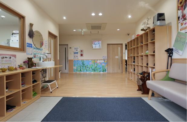 明るくきれいな建物です。建物内に放課後等デイサービスや女性専用シェアハウスがあり、子どもや学生との交流もあります。